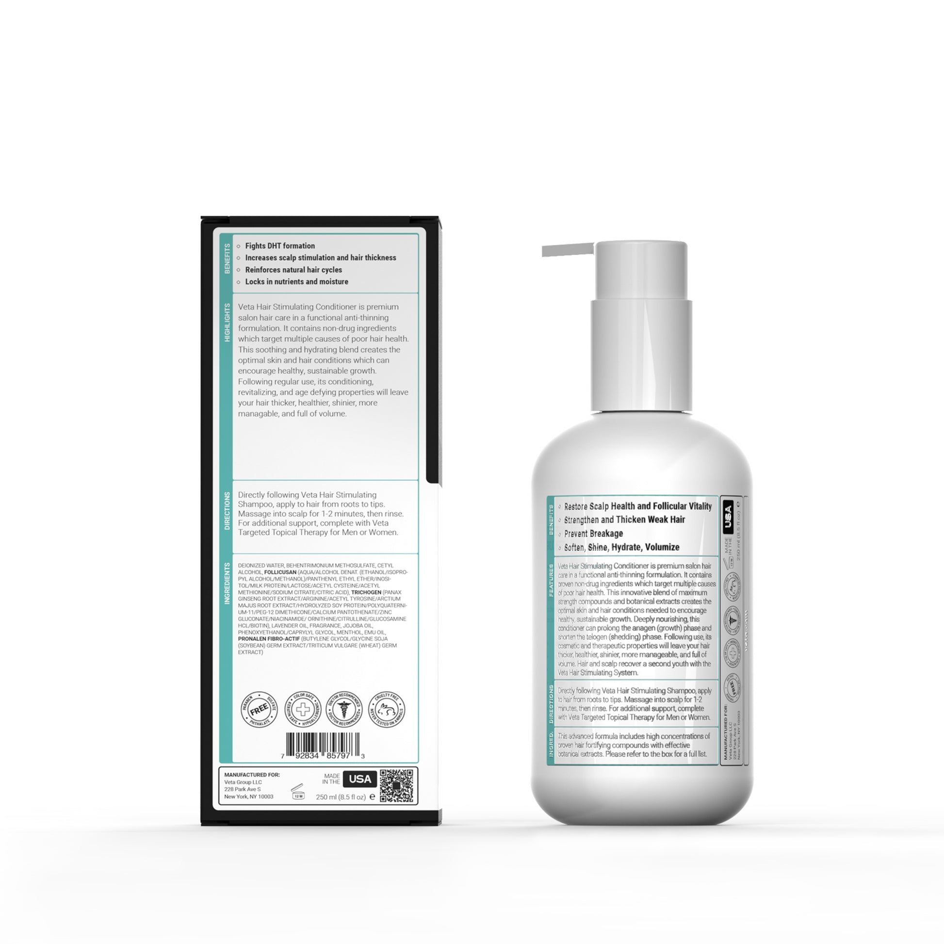 Veta Hair Stimulating Conditioner invigorates your hair cycle by combating both genetic and environmental factors of hair thinning. Every time you condition your hair, Veta works to fight thinning at the source, promote healthy hair, and reduce scalp irritation that can lead to premature hair loss.