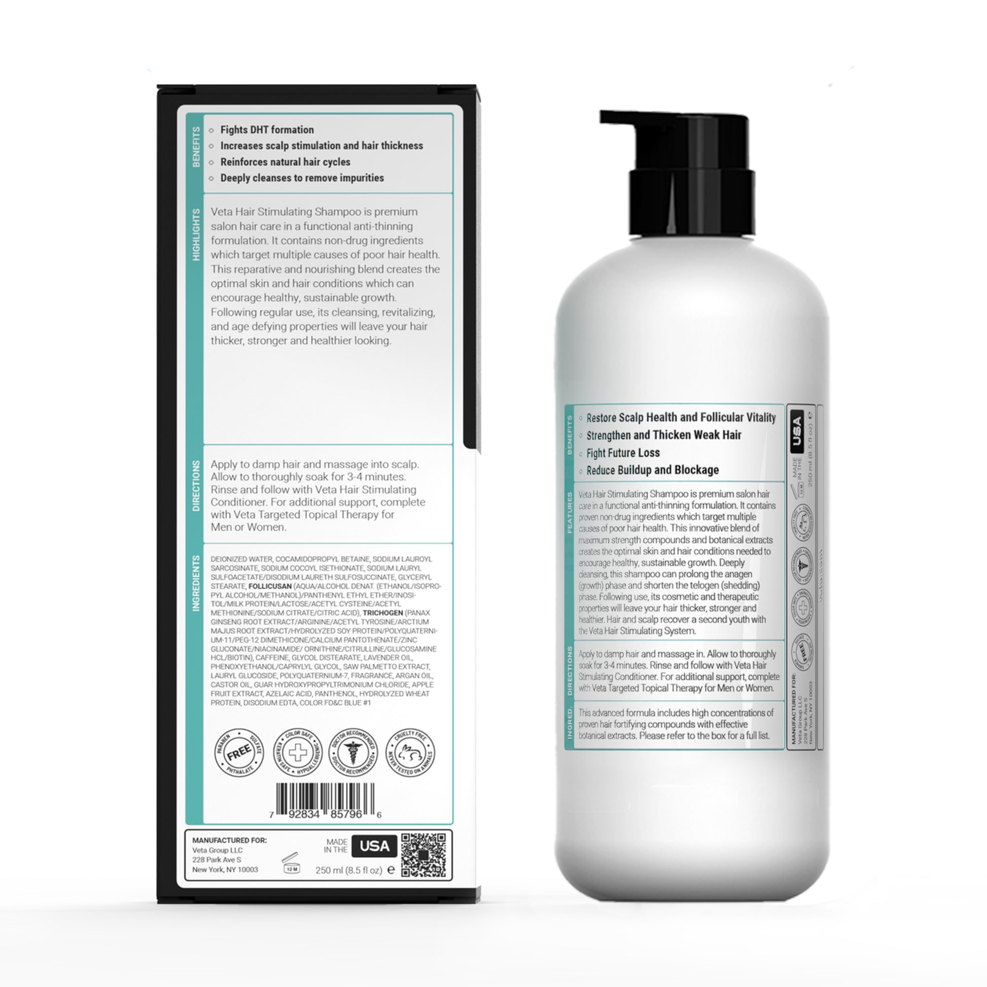 Veta Hair Stimulating Shampoo revives your hair cycle by combating both genetic and environmental factors of hair thinning. Every time you wash, Veta works to fight hair thinning at the root, encourage healthy hair, and reduce scalp inflammation that can lead to premature hair loss.